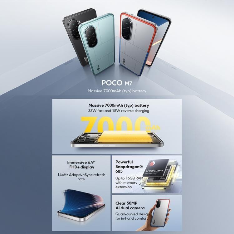 [HK Warehouse] Xiaomi POCO M7 Global, 8GB+256GB, Side Fingerprint, 6.9 inch Xiaomi HyperOS 2 Snapdragon 685 4G Octa Core, NFC, Network: 4G (Black)